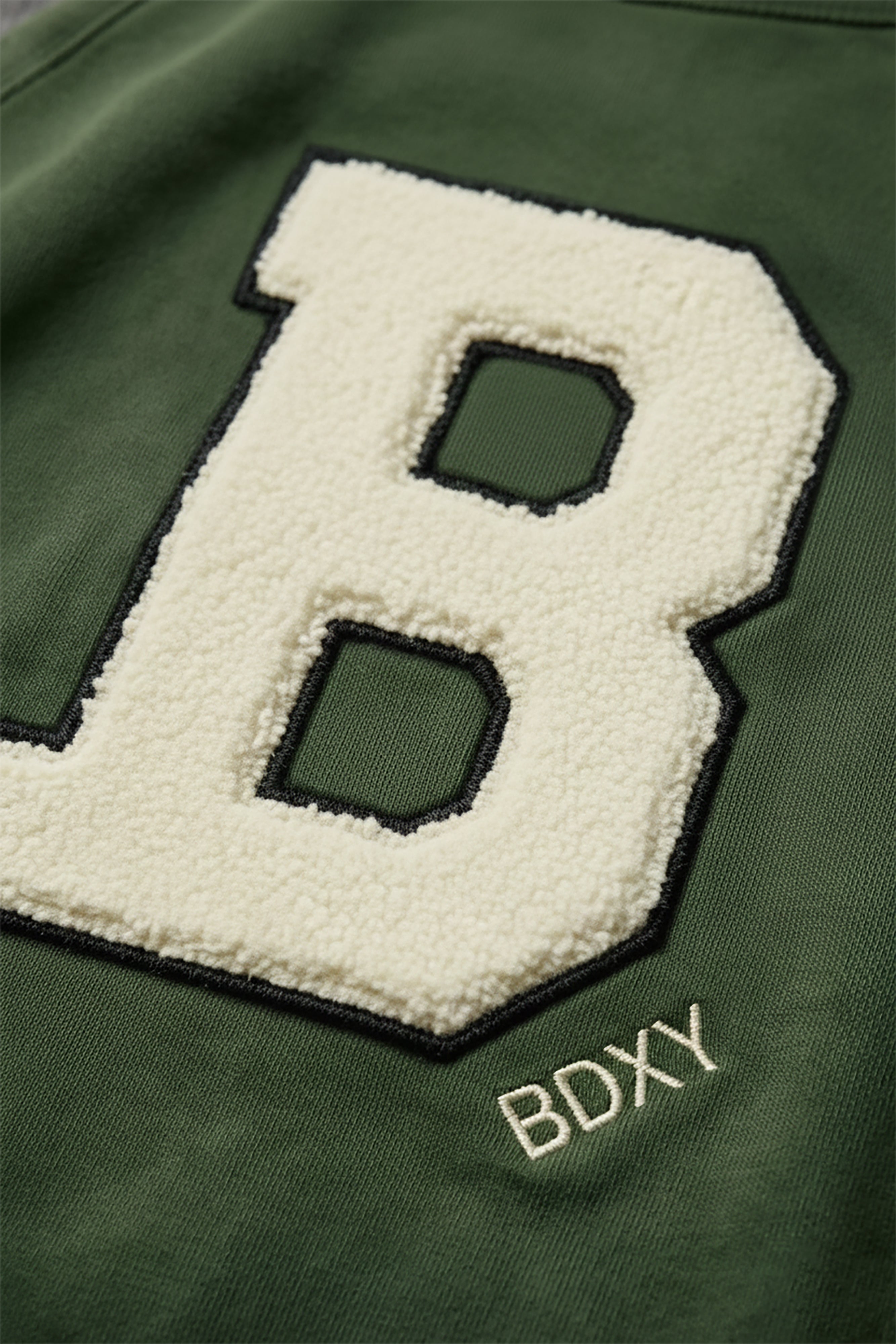 The clean, front-embroidered 'B' logo and relaxed fit echo the preppy, laid-back vibe of Ivy League campuses. This Rigger B sweater combines timeless elegance with casual cool, making it a versatile piece for anyone who appreciates classic design in a contemporary direction.