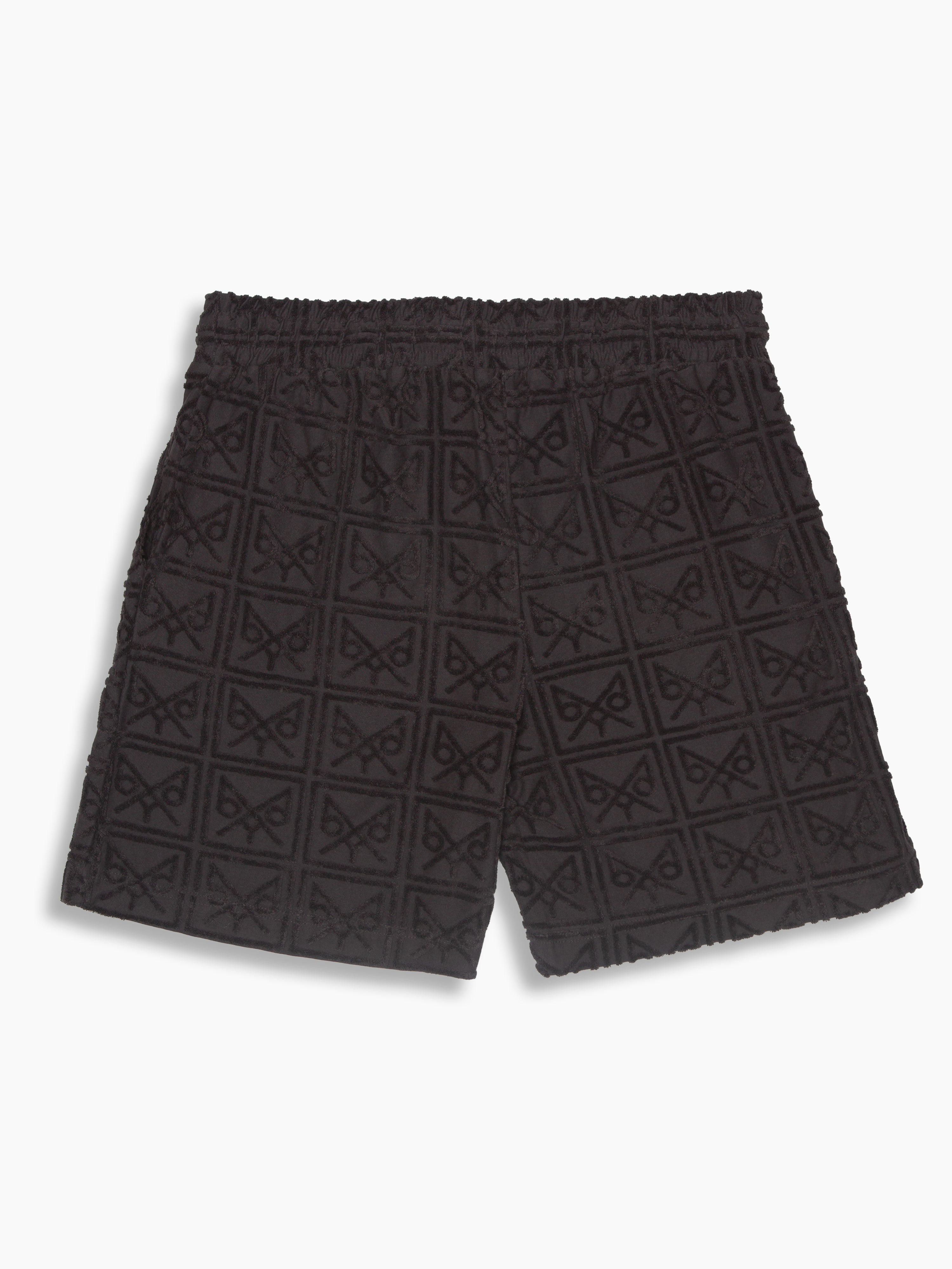 THE CUT shorts are inspired by the effortless resort style of 1960s Bond; Sean Connery’s iconic terry playsuit in Goldfinger, redefined for the modern wardrobe. Made from plush cotton terry jacquard, these shorts feature a relaxed fit, elastic waistband, and adjustable cord for comfort that adapts to your every move.